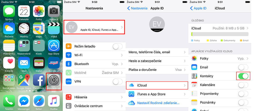 Prenos kontaktov pri iPhone smartfónoch cez iCloud