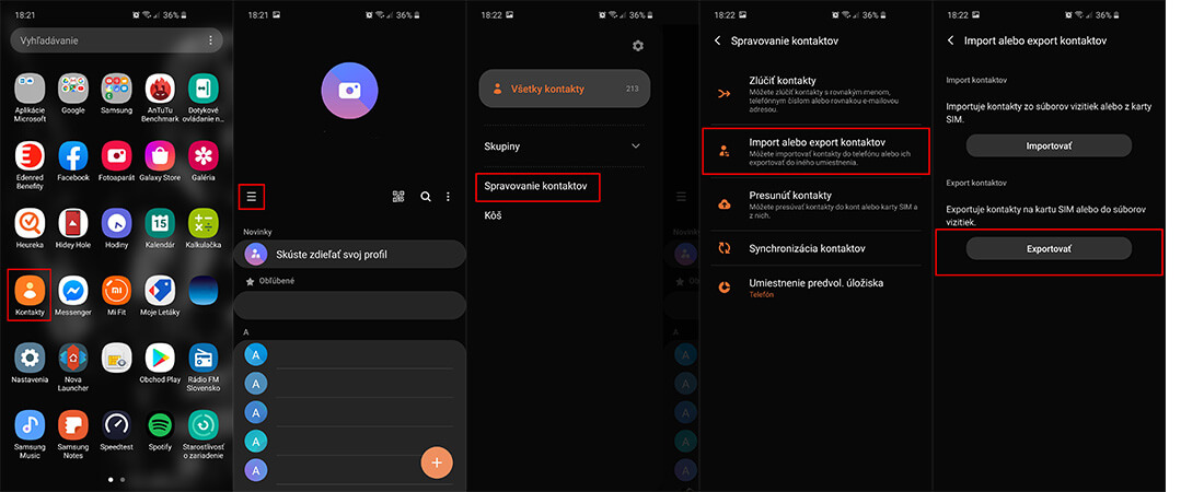 Prenos kontaktov cez import/export pri Android smartfónoch