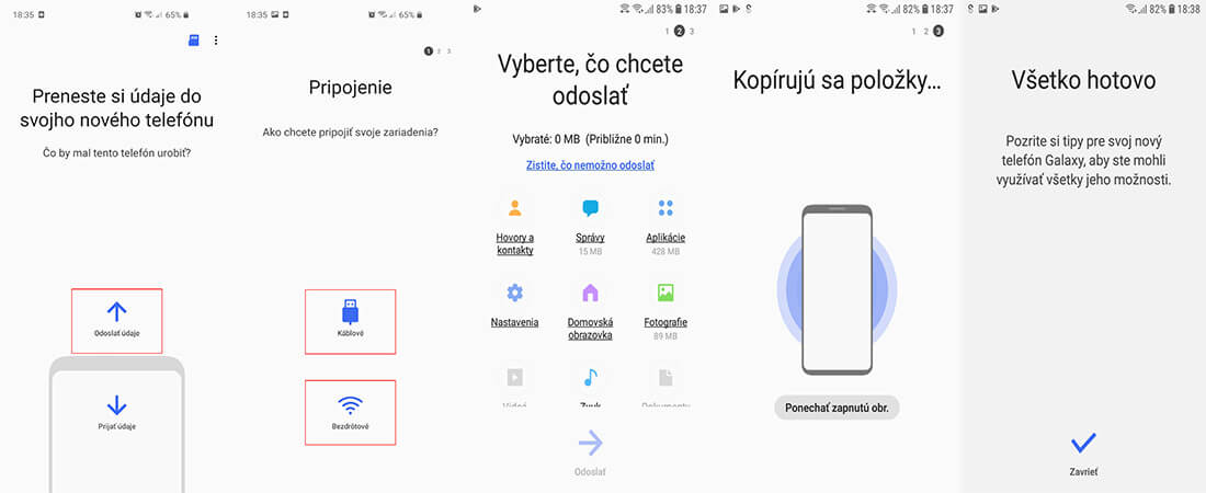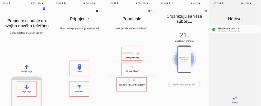 - Vybrané údaje sa vám začnú odosielať zo starého do nového zariadenia. Čas odoslania a prijatia záleží od veľkosti položiek. Ak vám v starom zariadení ukáže “Všetko hotovo”, v novom zariadení to môže ešte chvíľu trvať, kým vám údaje spracuje a zobrazí.