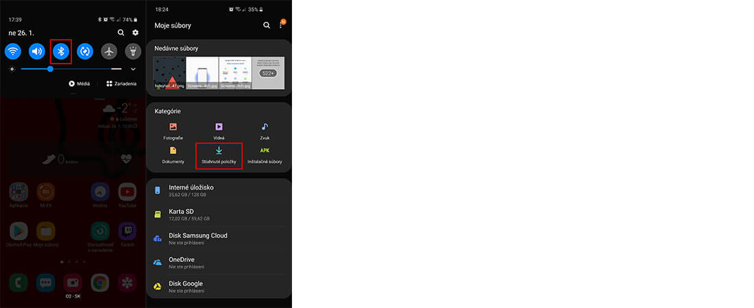 - V novom zariadení si zapnete “Bluetooth”, ktoré nájdete stiahnutím hornej notifikačnej lišty.
