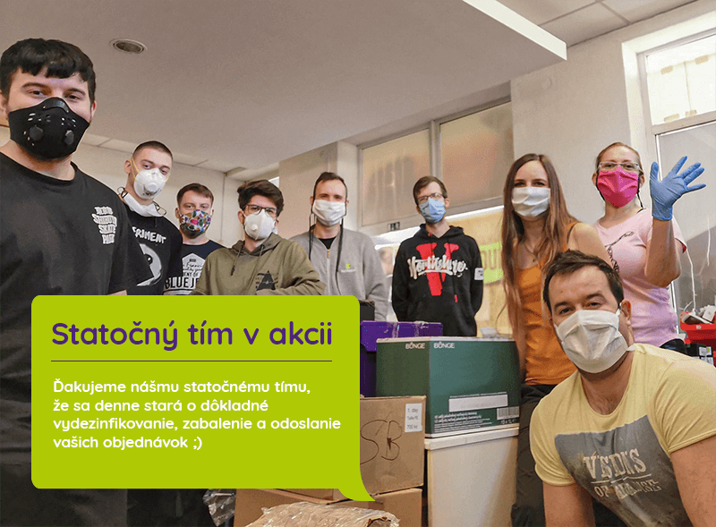 Po vypuknutí vážnej pandémie koronavírusu (COVID-19) sa správame maximálne zodpovedne, aby vám produkty prišli čo najčistejšie a hlavne nezavírené. Pre tento účel všetci naši šikovní skladníci nosia ochranné rúška na tvár, gumené rukavice a dodržiavajú maximálnu hygienu pri manipulácií s tovarom. Chcete vedieť ako postupujeme ?