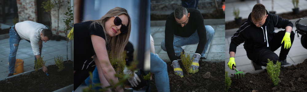 Nesmierne si vážime, že naši zamestnanci majú k životnému prostrediu rovnako blízko ako my. Už pri výberovom konaní dokážeme odhadnúť, či budú naše hodnoty rovnaké a potvrdzuje sa to aj príchodom nových ľudí do firmy. Pred pár dňami sme sa spoločne pustili do vysádzania stromčekov a kríkov, ktoré budú zdobiť okolie našej centrály. Zároveň krásne doplnia unikátne bývanie v loftoch v srdci Lučenca. Takéto aktivity nepomáhajú len prírode, ale utužujú aj vzťahy medzi nami.