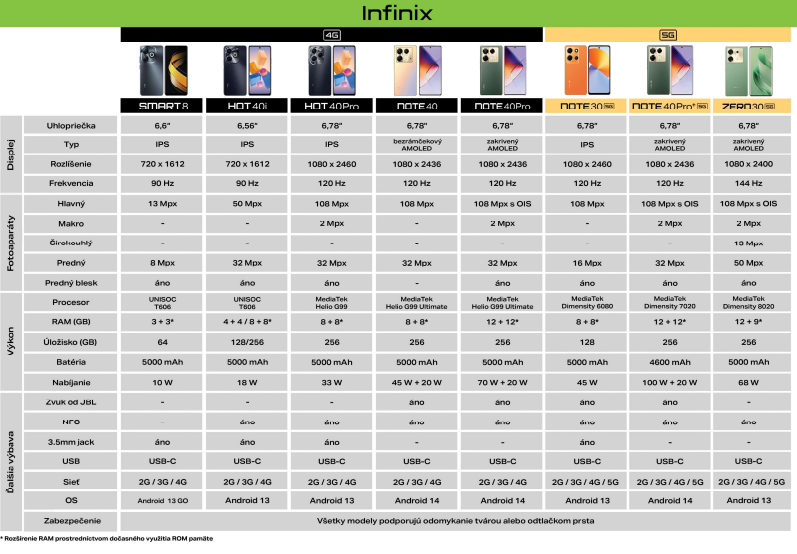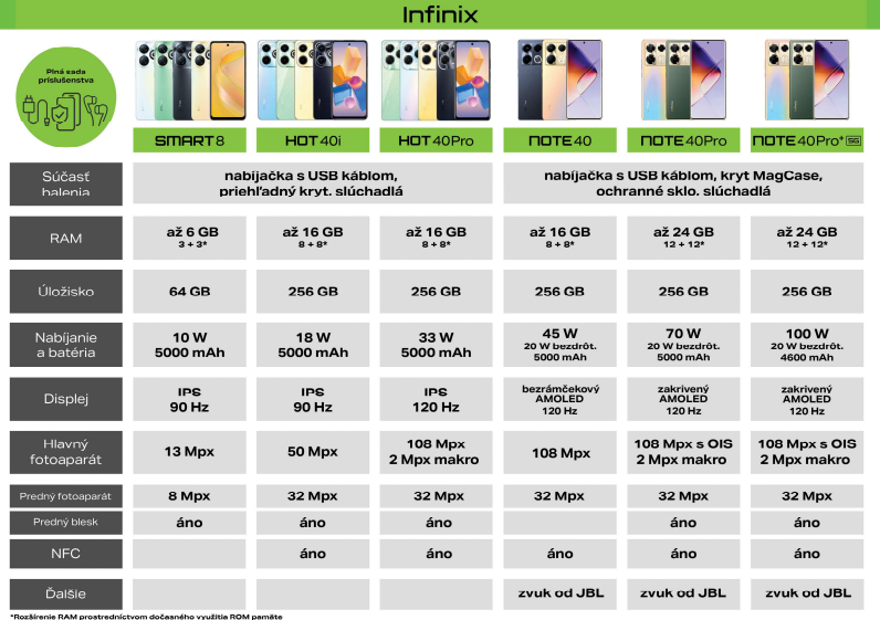 Zorientovali ste sa? Veríme, že vám toto porovnanie, spolu s prehľadnou tabuľkou pomôže získať informácie o cenovo dostupných a zároveň s trendmi a technológiami kráčajúcich mobilov Infinix. Či už hľadáte prvý mobilný telefón pre školáka alebo spoľahlivého parťáka pre náročnejšieho používateľa, Infinix má rozhodne čo ponúknuť. Ak si však stále nie ste istí, kontaktujte nás telefonicky na +421 940 600 100 alebo mailom na info@mobilonline.sk a my vám RADI PORADÍME.