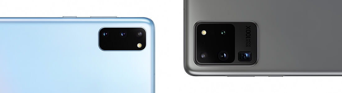 Samsung výrazne vylepšil svoje vlajkové lode hlavne v oblasti zadného fotoaparátu. Samsung Galaxy S20 a S20+ ponúknu rovnaké snímače, a to hlavný 12 Mpx (f/1.8) objektív, sekundárny ultraširokouhlý 12 Mpx (f/2.2) a tretí až 64 Mpx (f/2.0) teleobjektív s možnosťou 3x optického hybridného zoomu. Pri modeli S20+ nájdeme ešte navyše štvrtý ToF senzor (Time of Flight) na ešte presnejšie rozmazanie pozadia pri fotografiách alebo videách. Predný fotoaparát má pri oboch smartfónoch 10 Mpx.