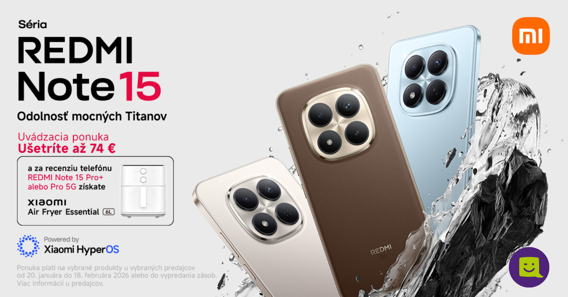 - Darček za recenziu zadarmo: Za recenziu Redmi Note 15 Pro+ alebo Pro 5G získate Xiaomi Air Fryer Essential 6l (podmienky na xiaomipromo.sk).
